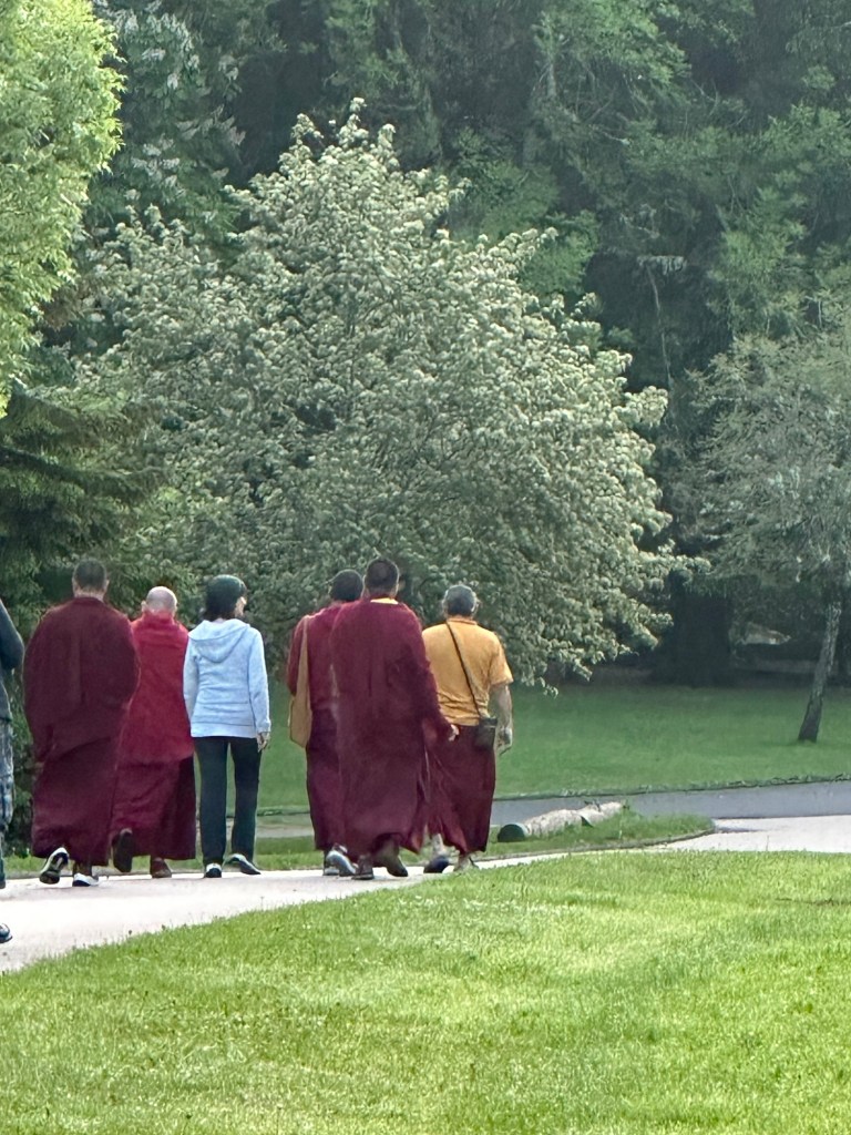 Two hundreds meters after the entrance, from far away, we saw a group of Tibet’s monks walking toward us. A bolt of electricity stung my head made me understand what to do… We approached them to say hello. Actually, they are doing their Europe’s tour to collect money for medical reason of their monastery. Then I invited them to come to my place. The stay, conference board room are complimentary so that they could show their culture of mandala and receive the donation.